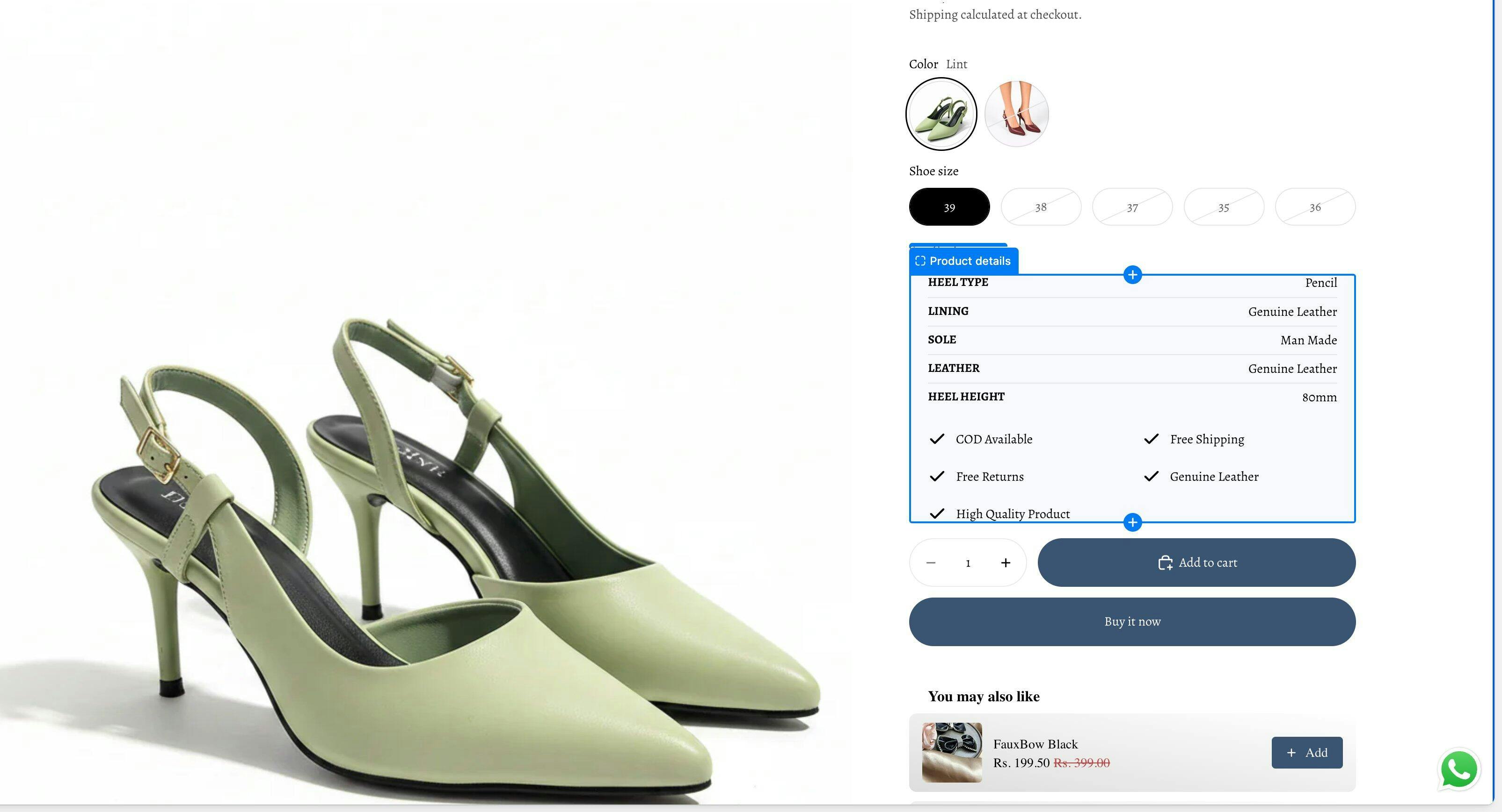 3.5-inch sleek pointed heel | Minimal slingback design for a secure fit | Premium matte vegan leather finish | Soft cushioned insole for extra support | Durable anti-slip outsole for steady grip | Lightweight & versatile for formal to festive wear